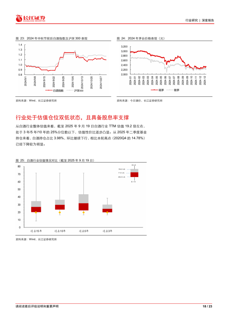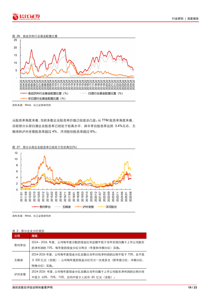 考虑当前白酒行业整体估值和基金持仓均处于历史低位,且当前多数龙头白酒企业已经具备较强的股息率的支撑,因此翻翻策略,当前我们认为白酒已经进入较好的配置时间点。